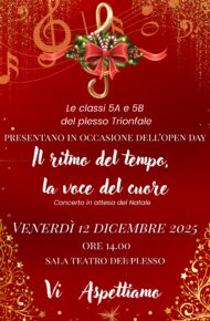 Le classi 5A e 5B del plesso Trionfale presentano: l ritmo del tempo, la voce del cuore. Concerto in attesa del Natale Venerdì 12 dicembre 2025 ore 14.00